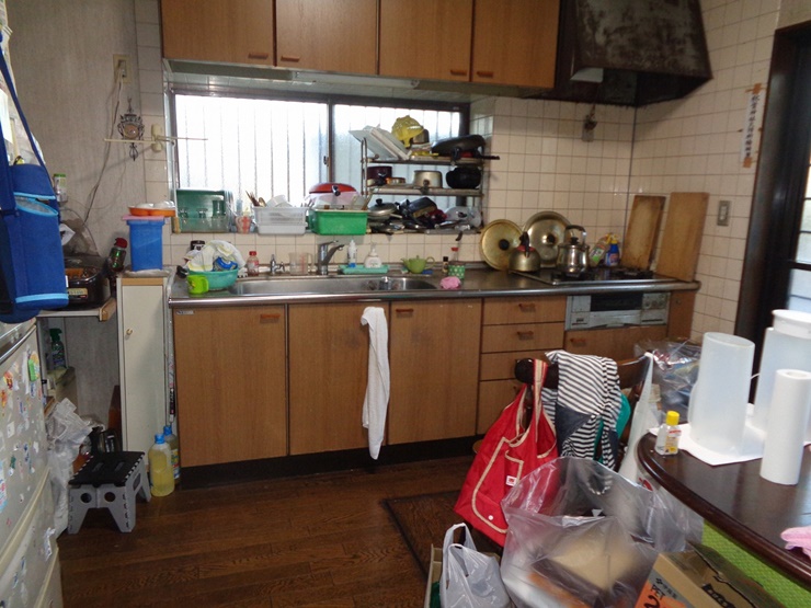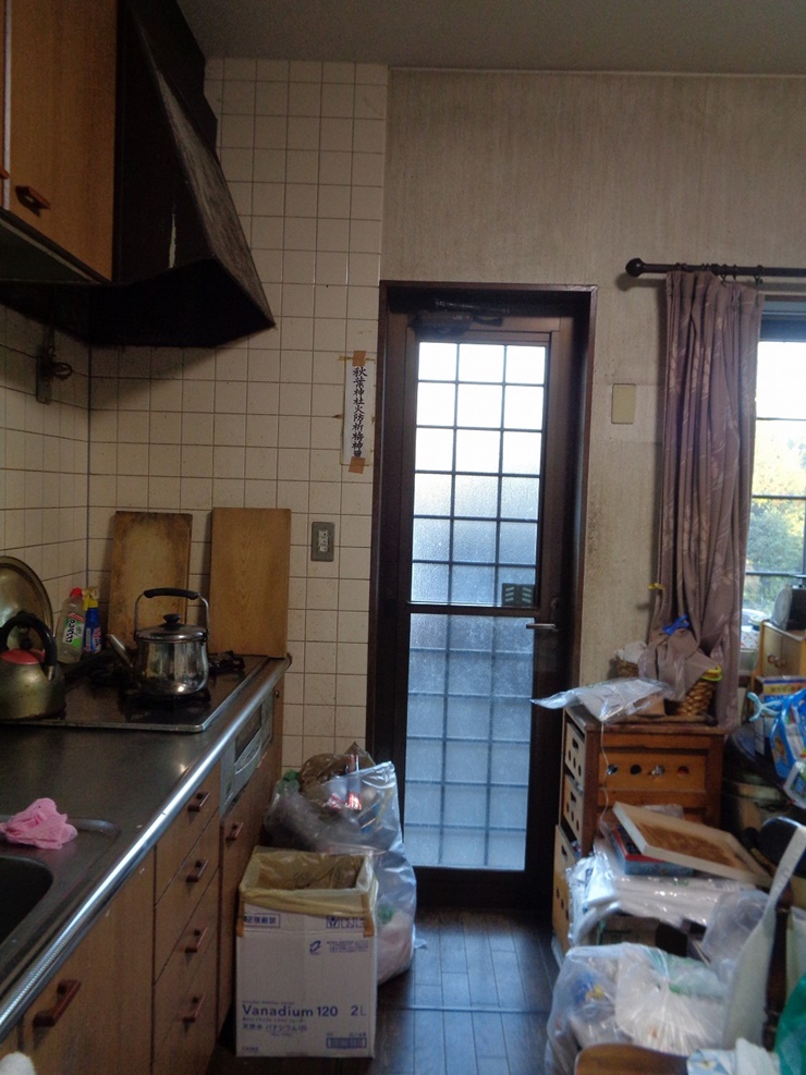工事前のDK、画像手前にテーブルがあります。居間は隣接の別室です。