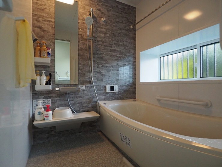 リフォーム後の浴室(窓が既存のままだとユニットバスの浴槽に埋まってしまうため小さな窓に交換、断熱サッシで寒さも解消しています)TOTO/サザナ1616サイズ