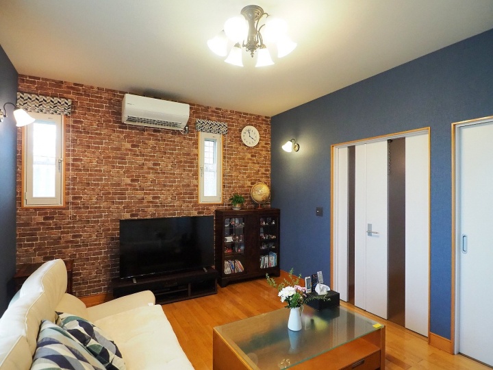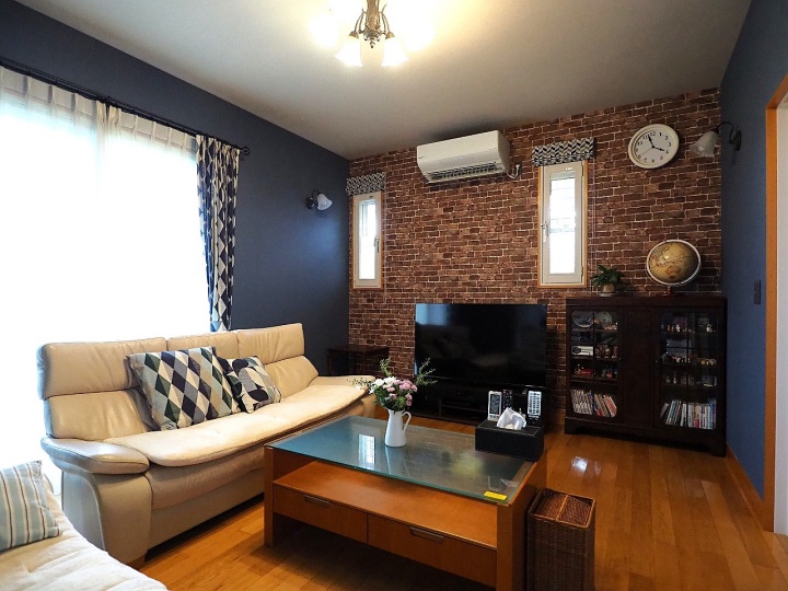 レンガ調のクロスをアクセントにした